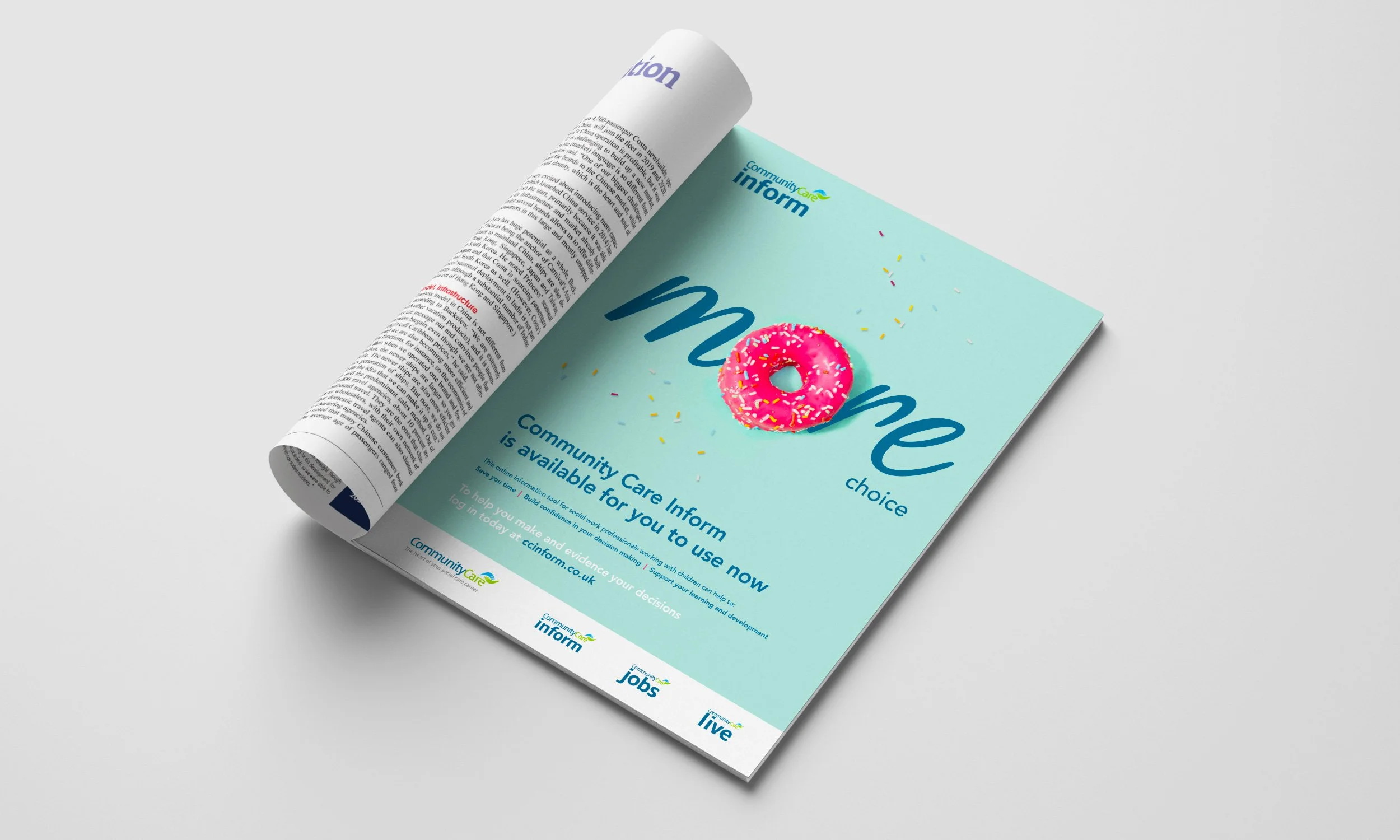 The word ‘more’ became the focus of the campaign, demonstrating the value that social care workers can gain through Community Care. Supporting imagery represented the various solutions and resources available.